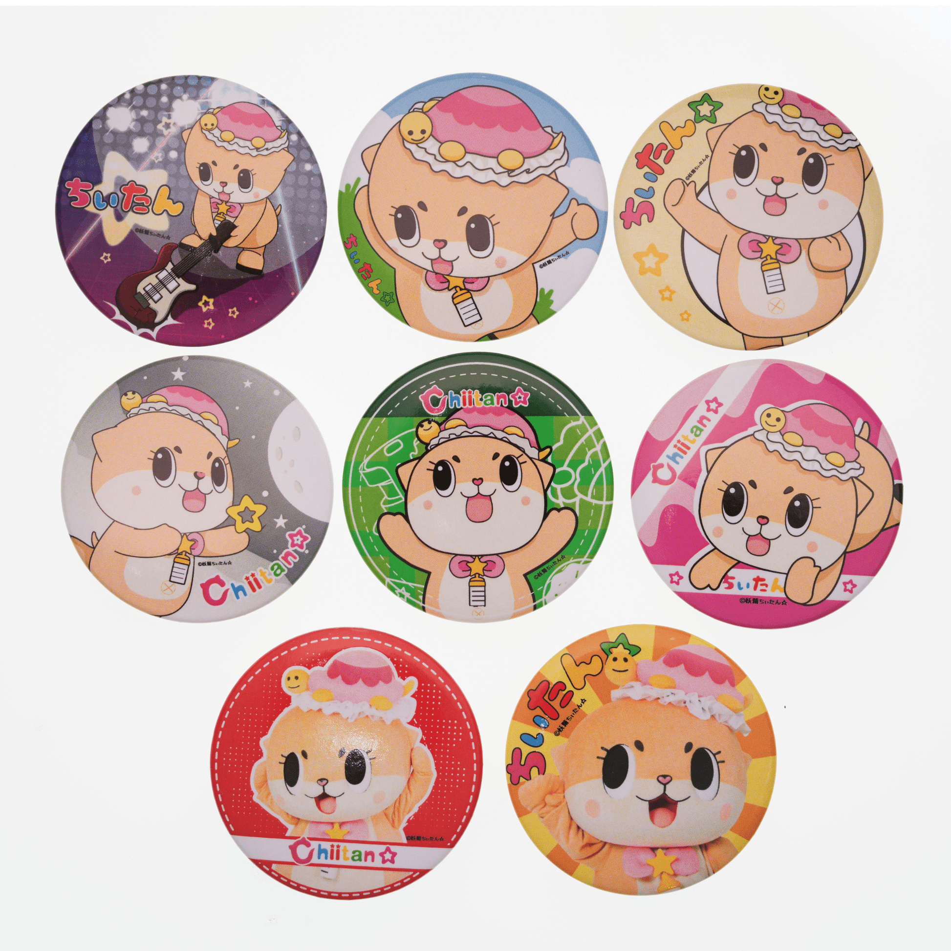 Bring home the charm of Chiitan☆ with this colorful button badge set, delivered as a random selection of two.