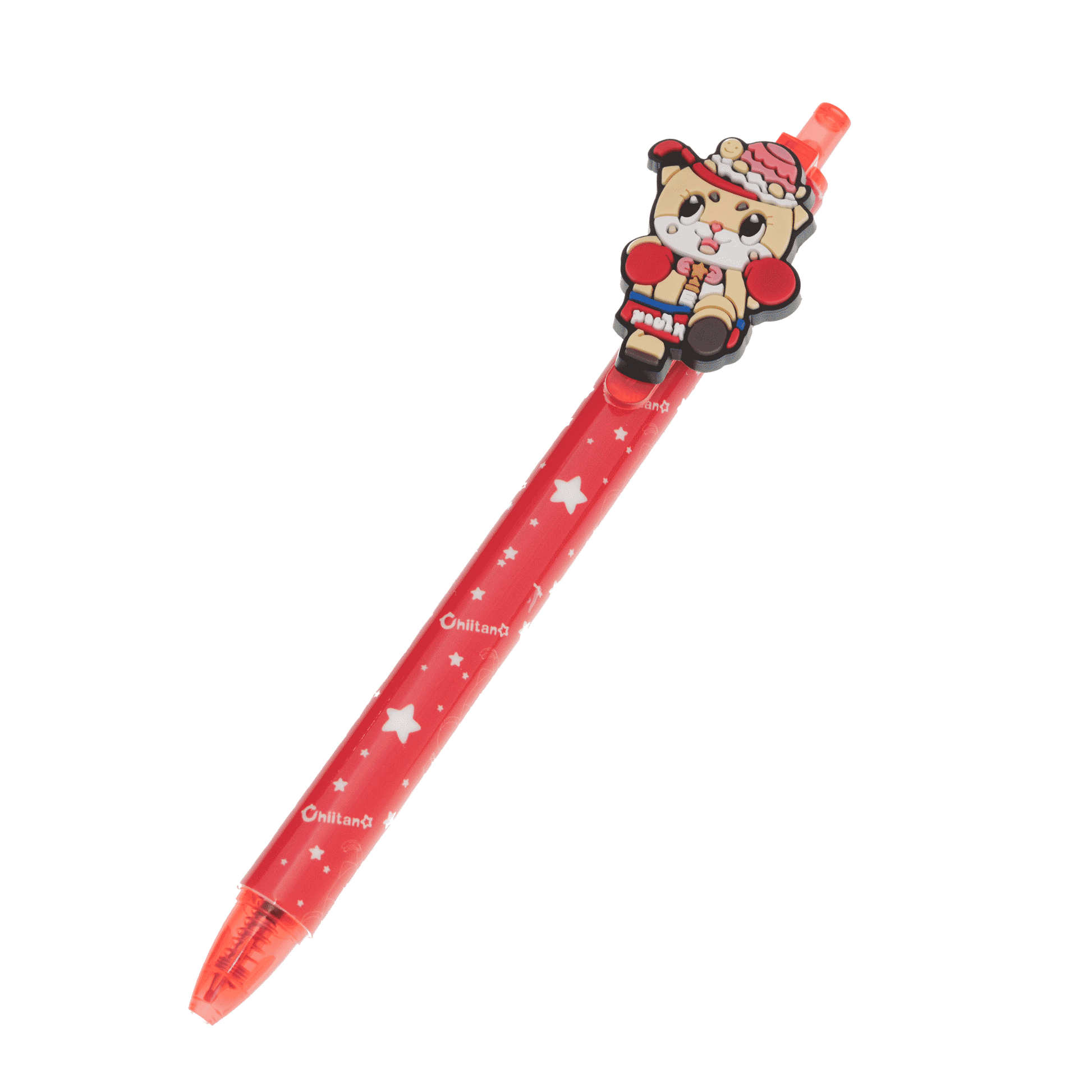 Enjoy writing with this adorable Chiitan☆ ballpoint pen, featuring a fun 3D mascot topper and colorful barrel design.